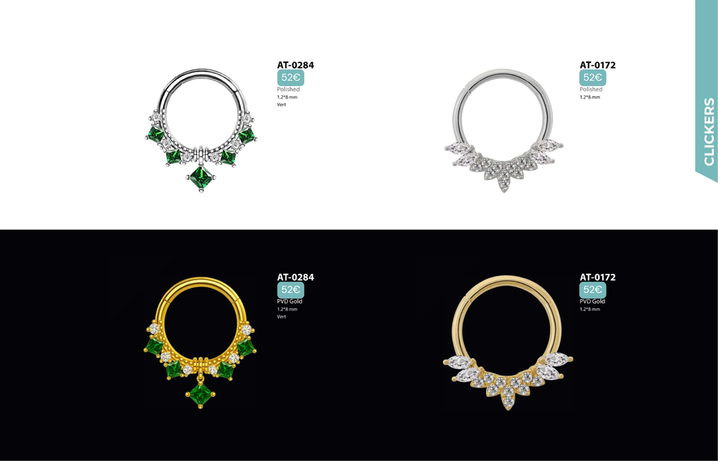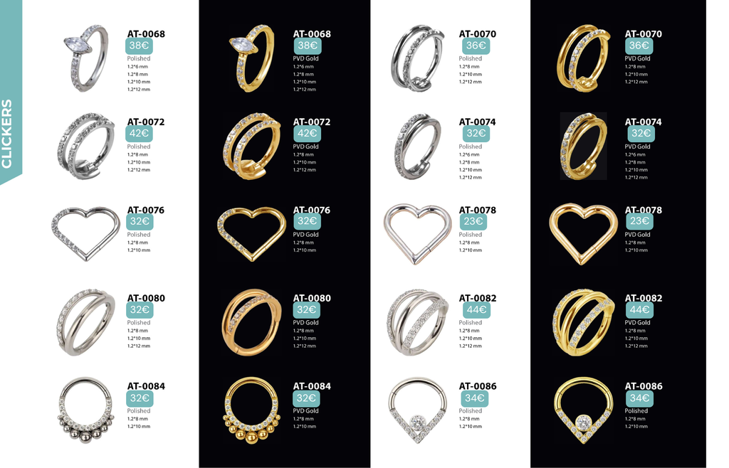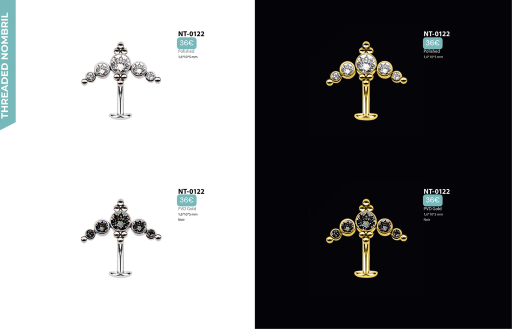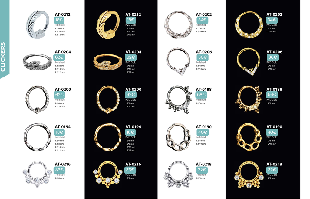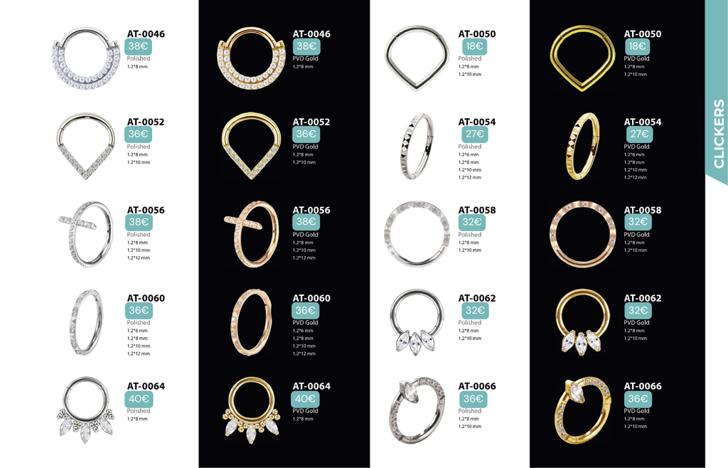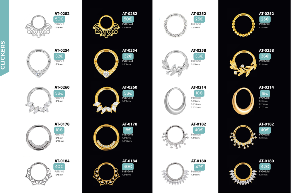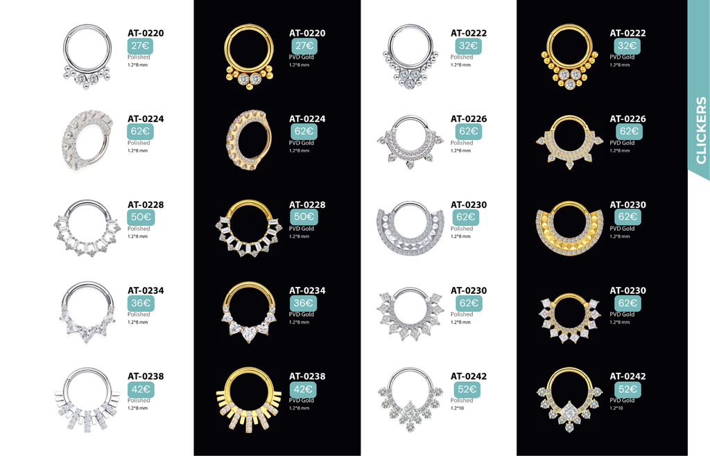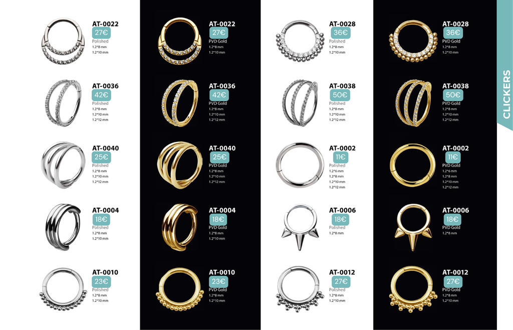 Compatibles avec Lobes, Low Helix, Mid Helix, Helix, Hidden Helix, Vertical Helix, Anti-Helix, Flat, Tragus, Conch, Rook, Outer Conch, Faux Rook, Faux Anti-Tragus, Narine, Madonna, Monroe, Labret, Medusa, Ashley.