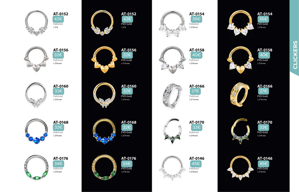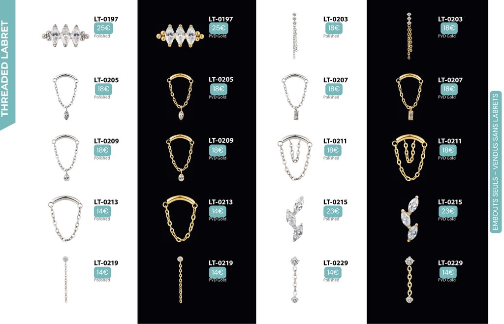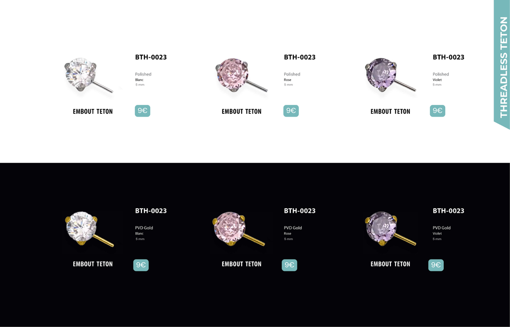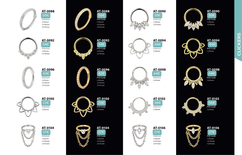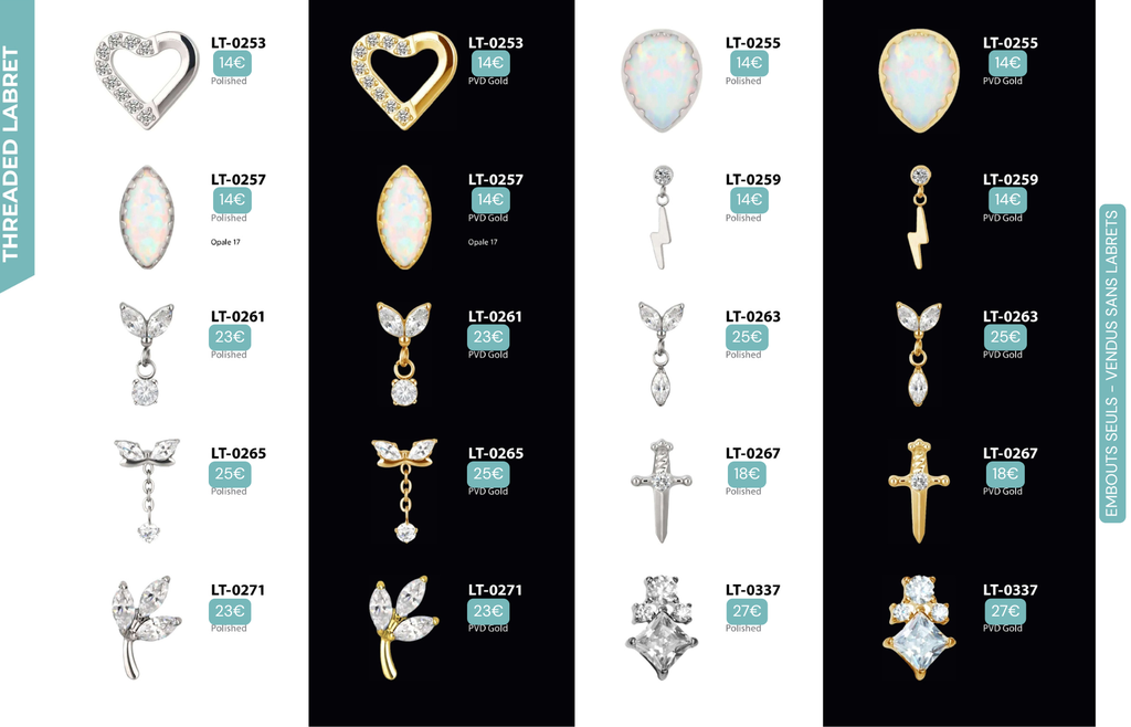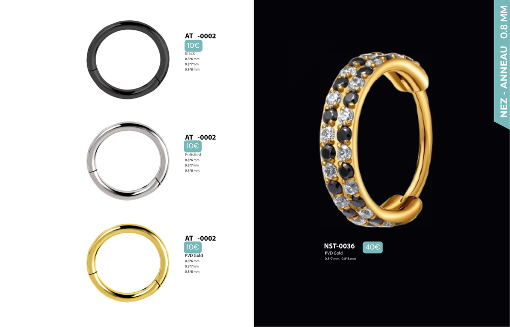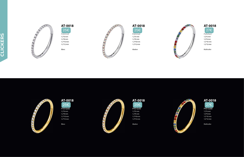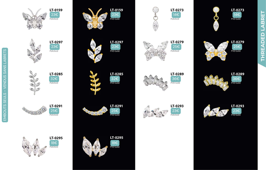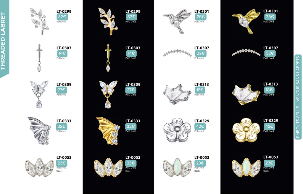 Compatibles avec Lobes, Low Helix, Mid Helix, Helix, Hidden Helix, Vertical Helix, Anti-Helix, Flat, Tragus, Conch, Rook, Outer Conch, Faux Rook, Faux Anti-Tragus, Narine, Madonna, Monroe, Labret, Medusa, Ashley.