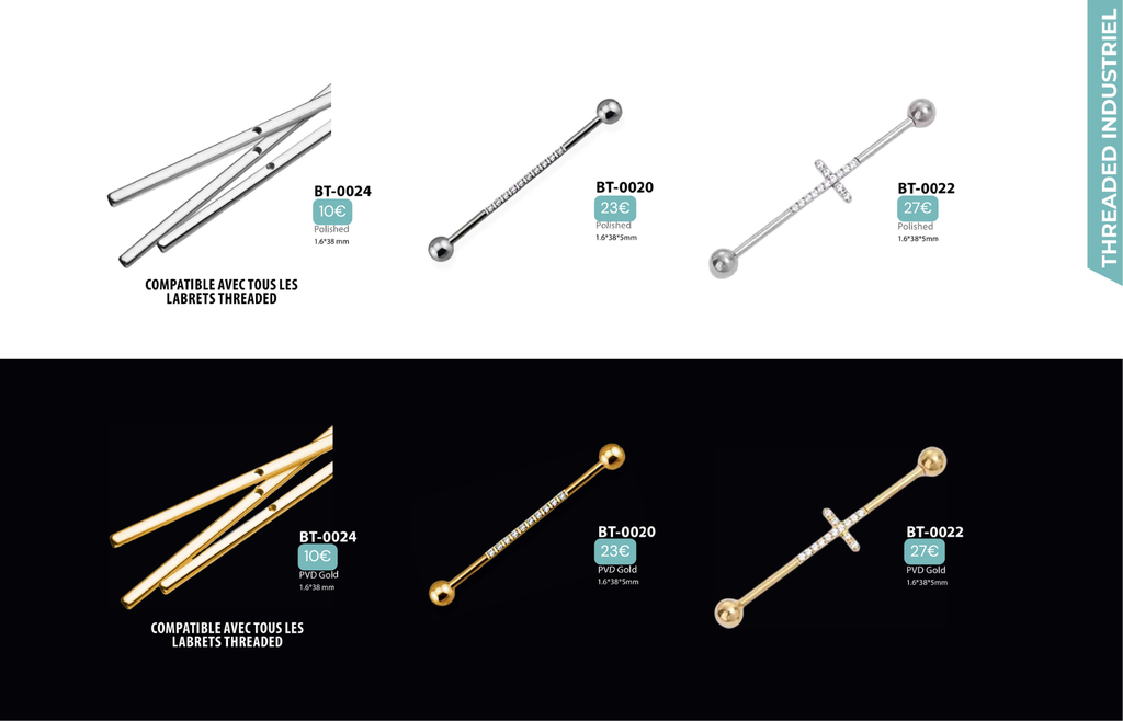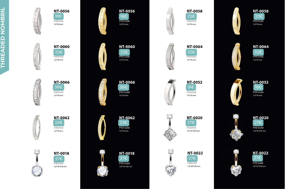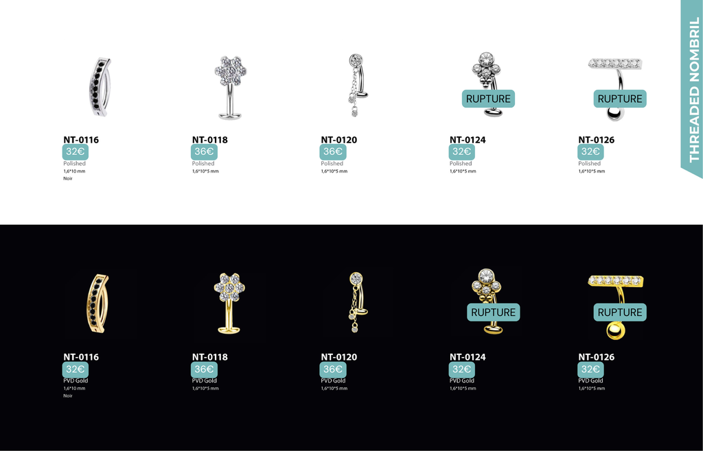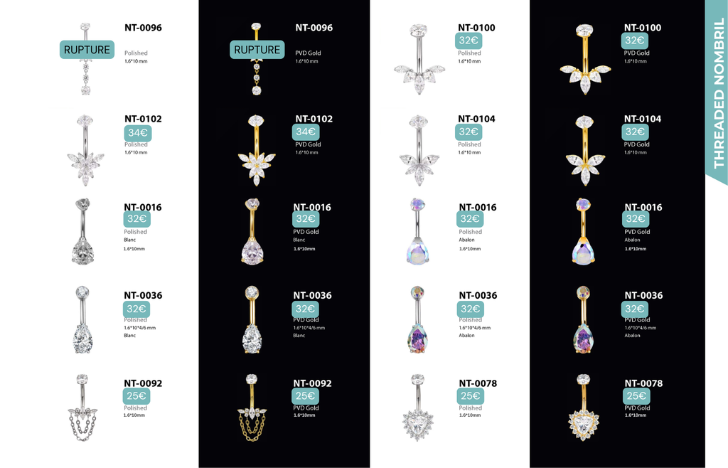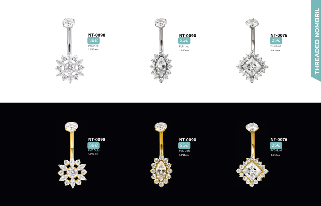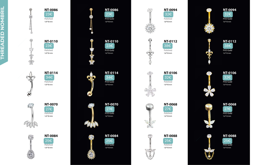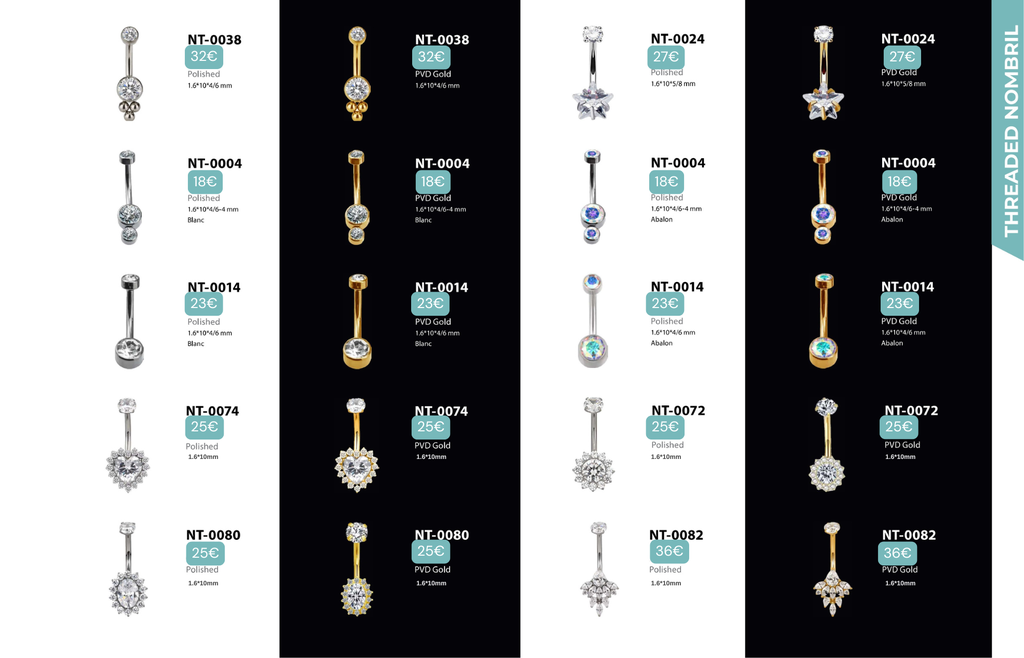 Threaded Nombril : Compatibles avec Nombril, Christina, Vertical Clitoral Hood, Fourchette.