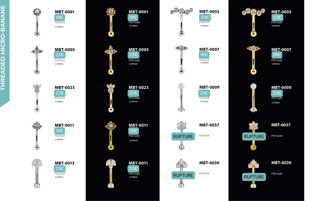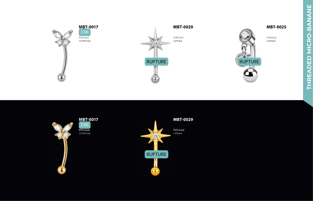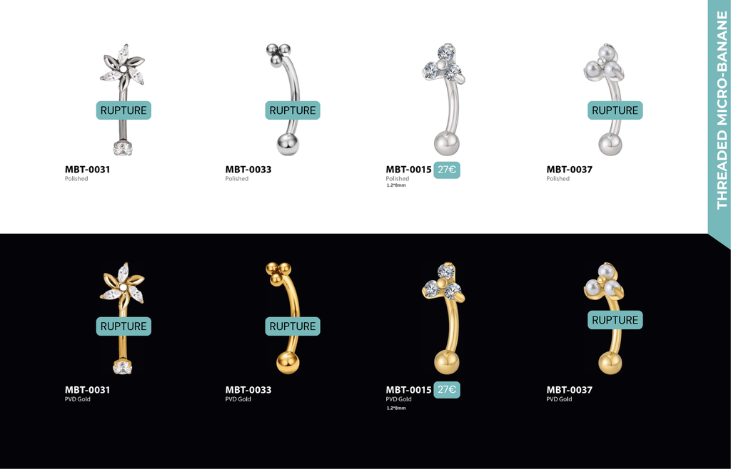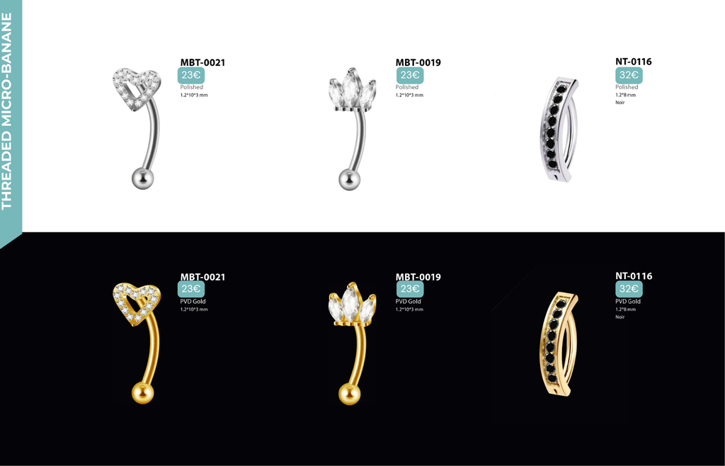 Threaded Micro-banane : Compatibles avec Rook, Anti-Tragus, Snug, Arcade, Labret Vertical, Jestrum.